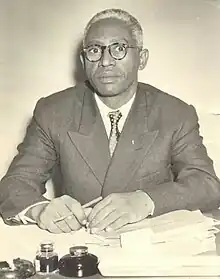 Following October 1964 Revolution and the removal of Abboud,he was chosen as a member of the Sovereignty Council, representing the People's Democratic Party[7] and serving as a member with Tigani El Mahi (Academic / Independent), Mubarak Shadad (Democratic Unionist Party), Luigi Adwok Bong Gicomeho (Southern Front) and Abdel Halim Mohamed (Umma Party) from 3 December 1964–10 June 1965.[2][8] He was the president of the council, and consequently the head of the state between from 6–31 December 1964 and 1–10 June 1965.[9][10] The Second Sudanese Sovereignty Council was formed to oversee the transition to civilian rule. Sirr Al-Khatim Al-Khalifa, a respected Sudanese politician, served as the Prime Minister from 30 October 1964 to 2 June 1965. Al-Khalifa, who had been a vocal critic of General Abboud's regime, was seen as a unifying figure during the transition.[11][12]