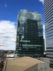 The Edmonton Tower[26] is a 29-storey 129.84-metre (426.0 ft) tall, office building in the Ice District area of Edmonton. It was topped-out in early spring 2016, and completed in December 2016. City of Edmonton staff began moving to the tower in November 2016.[25][26][34] It is Edmonton's eighth tallest building.[35]