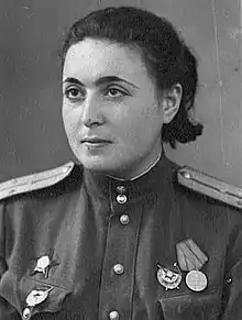 Ida Nukhimovna Firer née Segal (Russian: Ида Нухимовна Сегал; 9 January 1923 – 27 February 2017) was an assistant political commissar in the Red Army who functioned as a paratrooper and medic during World War II. In 1943 for her bravery during the Dnieper crossing she was nominated for the title Hero of the Soviet Union, but received only the Order of the Red Banner.