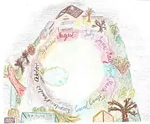 Over the past decade, it has been suggested that the Bouba/Kiki phenomenon is a case of ideasthesia.[16][17][18] Most people will agree that the star-shaped object on the left is named Kiki and the round one on the right Bouba.[19][20] It has been assumed that these associations come from direct connections between visual and auditory cortices.[20] For example, according to that hypothesis, representations of sharp inflections in the star-shaped object would be physically connected to the representations of sharp inflection in the sound of Kiki. However, Gomez et al.[16][21] have shown that Kiki/Bouba associations are much richer as either word and either image is associated semantically to a number of concepts such as white or black color, feminine vs. masculine, cold vs. hot, and others. These sound–shape associations seem to be related through a large overlap between semantic networks of Kiki and star-shape on the one hand, and Bouba and round-shape on the other hand. For example, both Kiki and star-shape are clever, small, thin and nervous. This indicates that behind Kiki-Bouba effect lies a rich semantic network. In other words, our sensory experience is largely determined by the meaning that we assign to stimuli. Food description and wine tasting is another domain in which ideasthetic association between flavor and other modalities such as shape may play an important role.[22] These semantic-like relations play a role in successful marketing; the name of a product should match its other characteristics.[23]