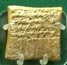 This tablet or "seal" was one of only two recorded sources of Idrimi from the British Museum. The tablet was Idrimi's royal seal, which contained his accounts of goodwill gifts of silver and other forms of tribute like cattle from Mukish and Zelki and other nearby cities, possibly demonstrating a tribute system among his allied city-states dating back to his alliance with them during his exile. His seal represented his act of piety towards the Shutu people and to those who "had no settled abode," to show his generosity as a king and former Habiru refugee as he rebuilt his cities.[37]