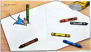 The text was interpreted by illustrator Felicia Bond to show the increasing energy of the mouse, with the little boy being run ragged by the end of the story. The art was praised by School Library Journal for its "meticulous attention to detail",[1] and was executed with vibrant colors of blended pencil in a complex process of layering magenta, cyan, yellow, and black on separate sheets, which were then assembled during printing.