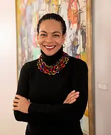 She has a Bachelor's degree from the University of Massachusetts at Amherst (1987) and she took courses at the Dorsey Studios for the Performing Arts and The University of Southern California.[3] She is also a fellow of Harvard University’s Radcliffe Institute[8] and the Aspen Institute,[4] as well as a director’s fellow of the MIT Media lab.[9]