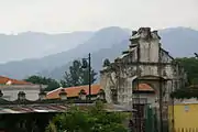 When Franciscan missionaries arrived in Guatemala from Spain in 1530 they were assigned 120 villages by the civil authorities.[1] They were the first to move to the Panchoy Valley in 1541 where they built a church at the site of today's School of Christ (Escuela de Cristo). This chapel was severely damaged in 1565 and during the next ten years donations were collected to build a new sanctuary located two blocks away in 1579. Parts of this construction, maybe the only ones in Antigua which date back to the 16th century, can be appreciated at one side of today's sanctuary. San Francisco el Grande became a significant religious and cultural center for the whole region. Theology, law, philosophy, physics and mathematics were taught at San Buenaventura College, located in today's monastery ruins. The college also favoured painters of the colonial era such as Cristóbal de Villalpando, Thomas de Merlo and Alonzo de la Paz.