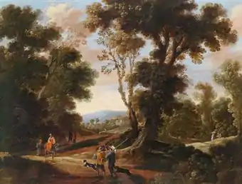 Very few details have been preserved about the life of Ignatius van der Stock. He is first recorded in 1653 when he became a pupil of the prominent landscape painter Lodewijk de Vadder in Brussels.[1] De Vadder died in 1655. It is not clear with whom van der Stock continued his training between the date of the death of his master and 1660, the year he was admitted as a master in the Brussels Guild of Saint Luke.[1][2]