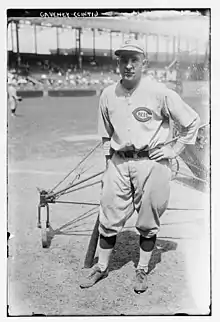 Caveney began his playing career in 1914 and became the starting shortstop for the San Francisco Seals from 1918 to 1921.[3] In 1922, he was part of a new left side of the infield for the Cincinnati Reds. His best season was 1923 when he had a .277 batting average and was one of the top defensive shortstops in the National League.[3] Injuries forced him to quit at the end of 1925.