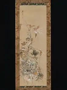 Little is known about Koson's early life.[2] He moved to Edo and studied painting with Sakai Hōitsu (1761-1828). He created a series of paintings that are closely related to a set by Hoitsu depicting court festivals (gosekku), that were adapted from Chinese practices and celebrated in Japan since the Nara period.[1]