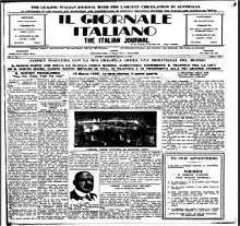 Il Giornale Italiano (The Italian Journal) commenced publication on 19 March 1932.[1] Although published in Sydney it included news from throughout Australia. Il Giornale Italiano had a wide circulation, with 8,000 copies sold each week. Published weekly, from June 1938, Il Giornale Italiano included an English Section with its own separate masthead.