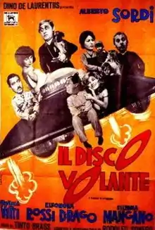 Il disco volante is a 1964 Italian comic science fiction film with mockumentary elements directed by Tinto Brass and starring Alberto Sordi. The film features the renowned comedian in four distinct roles as a dim-witted Carabinieri brigadiere, a cheesepairing accountant, a decadent count, and an alcoholic priest. Involving characters from different social strata, Il disco volante is effectively a satire of the Italian society, particularly the people of Brass's adopted home region Veneto.[1]