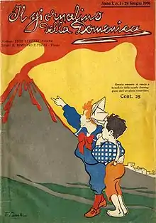 Founded in 1906[2][3] in Florence by ‘Vamba’, a pseudonym of the journalist Luigi Bertelli (1858–1920),[4] Il giornalino della Domenica adopted an avant-garde style and a tone markedly patriotic and irredentist.[5][6] Publication was initially weekly and its cover price of 25 centesimi made it distinctly more expensive than its rival the Corriere dei Piccoli which was launched two years later.