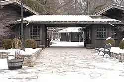![]() The covered breezeway between the two buildings of the smallest of the lodges, at White Pines Forest State Park. | |