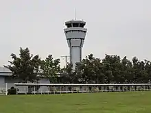 Iloilo International Airport has a 35-meter (115 ft) tall control tower equipped with air navigation equipment and radar systems.[36] A briefing room for pilots is found inside the control tower. Additionally, the airport complex has a fire station equipped with three fire trucks,[72] a maintenance building, a mechanical building and an administrative building.[36] In front of the passenger terminal is a 415-slot parking lot for the use of passengers, employees and airport visitors.[72]