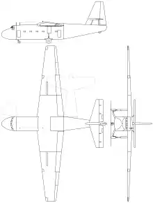 The Il-32 was an aluminum-bodied,[2] high-wing cantilever monoplane with a fixed tricycle undercarriage whose fuselage was square in cross-section to fit as much cargo as possible. The two-spar wings had a moderate aspect ratio. It was regarded as expendable and was built very simply to facilitate large-scale manufacture. The nose and tail sections swung up to 95° to starboard to facilitate loading.[3]