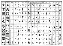 "Japanese alphabets", including Imatto-canna (third column). Diderot Encyclopedia 18th century.