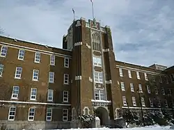 Immaculata High School was founded as an all-girls school in 1928 by Reverend J.J. O’Gorman, acting under the advice of higher ecclesiastical authority. He named the school "Immaculata", and opened it with an initial enrollment of 85 run by a staff of 3 Grey Sisters as an alternative to public school education for girls of moderate income located at 211 Bronson Avenue. The girls paid a monthly fee of one dollar — if their families could afford it. The site for the new school was the former Christie mansion property on Bronson Avenue at the corner of Lisgar Street, which was purchased for $25,000. W.E. Noffke, a well-known Ottawa architect, designed the school with eight classrooms, a science lab, a home economics classroom, a gymnasium and a stage area, and office space. A passageway linked the school to the former Christie mansion, which became the first convent home for the Grey Sisters who taught at the school. During the construction of the school building, the students of the newly formed Immaculata High School attended classes at St. Patrick’s Home, at the corner of Laurier Avenue and Kent Street. Sister Loyola was the first principal and the teachers were Sister Agnes of the Sacred Heart and Sister St. Geraldine.[1]