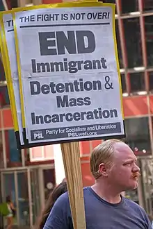 Protests by detained immigrants have taken place at several facilities, including the Varick Federal Detention Facility in Manhattan. One hundred detainees at the Varick site, all of whom had no criminal charges, sent a petition in October 2008 to the New York City Bar Association detailing human rights abuses and substandard conditions and asking for legal help.[55] On January 19, 2010, detainees at the same site initiated a hunger strike against the conditions of detention. The strike was broken up by a SWAT team that allegedly "used pepper spray and "beat up" some detainees, took many to segregation cells as punishment and transferred about 17 to immigration jails in other states."[62] In response to the report, the New York City Bar Justice Center began the NYC Know Your Rights Project. This initiative combines the efforts of the City Bar Justice Center, the Legal Aid Society and the New York chapter of the American Immigration Lawyers Association with the goal of providing more pro bono legal help specifically at the Varick detention center. Many detainees are left without legal council at the Varick Facility and at other detention center because their cases are considered civil and not criminal. In these civil cases, defendants must pay for legal counsel. The Bar's Justice Center found that very few detainees could afford such help.[63] Similarly, the Columbia Law Review states that in general most detainees do not have legal representation in their court cases. A report found that the lack of legal aid to detainees threatens the legitimacy and fairness of the court system and the efficiency of the courts themselves. For detainees without legal aid, the decisions of the court on a case are more likely to be incorrect or unjust, according to the report.[64] Many detainees do not get legal aid because, apart from financial issues, they often are transferred to other detention centers without giving alert to family, legal representation or advocacy network. Centers can be rural and isolated, located where legal aid, representation and other forms of advocacy can be inaccessible.[65]