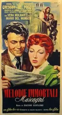 Immortal Melodies (Italian: Melodie immortali, also known as Mascagni) is a 1952 Italian musical-biographical melodrama film directed by Giacomo Gentilomo and starring Pierre Cressoy, Carla Del Poggio and Vera Molnar. It is based on real life events of classical composer Pietro Mascagni.[1][2] The film's sets were designed by the art director Alberto Boccianti.