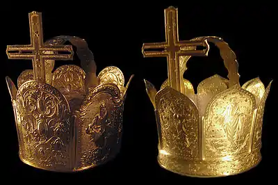 The imperial crowns of Charles VII at the treasury of Munich Residenz, Augsburg Crown (Left), Frankfurter Crown (right)