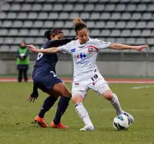 - ↑ Meulien, Anne-Charlotte (March 11, 2012). "Le PSG sort Juvisy aux tirs au but - Femmes de Sport - Sport féminin".