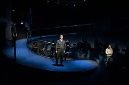 In the Penal Colony ran at the ACT Theatre until October 1. The production, directed by JoAnne Akalaitis with the same singers, opened in Chicago at the Court Theatre in December 2000. Its New York City premiere followed in June 2001 when it was performed by the Classic Stage Company.[3] The German premiere was produced in November 2002 by the Berliner Kammeroper, directed by Kay Kuntze, conducted by Peter Aderhold.[6] The work premiered in France at the Opéra National de Lyon on January 23, 2009.[7] The UK premiere took place at the Linbury Studio Theatre in London's Royal Opera House on September 15, 2010. On that occasion, it was performed in a production by Music Theatre Wales who then took it on tour to several British cites.[8] It was given three performances in May 2011 at the Theater der Künste in Zürich as part of the Philip Glass Festival and had its Australian premiere at the National Institute of Dramatic Art's Parade Playhouse in Sydney on April 7, 2012.[9][10]