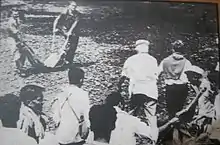 On 15 August 1955, 3–5,000 unarmed Indian activists[17] attempted to enter Goa at six locations and were violently repulsed by Portuguese police officers, resulting in the deaths of between 21[18] and 30[19] people. In one incident at Banda, Portuguese and Goan policemen armed with rifles and sten guns and assisted by Portuguese and African soldiers from Mozambique opened fire on a group of 30 unarmed activists wounding one woman and two men in the presence of international journalists. The shooting stopped when CBS cameraman Arthur Bonner and United Press International correspondent John Hlavacek, intervened and rescued the injured activists.[20]
