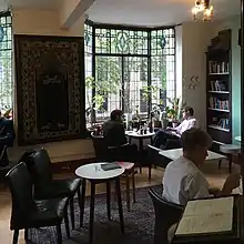 Later the space ceased to be a members' club and became open to all. From the 1950s, it served as a home away from home for members of the Indian diaspora, in its early days one of few places in London serving familiar food. Yadgar Marker and his daughter Phiroza became its owners in the 1990s.[6] The building retained original colonial features from the time of occupation by the India League. By the 21st century it was the only building in London connected to the India League which had been neither re-developed nor re-purposed. Portraits and photographs of famous historical figures from the Indian independence movement adorned the walls.[7] The National Trust staged an exhibition about the venue's history in 2019.[8][9]