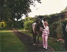 ![]() Indian Skimmer in the pre-parade ring prior to the International Stakes at York in August 1988 | |