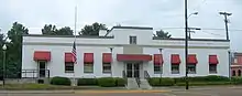 The United States Postal Service operates the Indianola Post Office.[24] A mural, entitled White Gold in the Delta by WPA Section of Painting and Sculpture artist Beulah Bettersworth, was installed in the post office in 1939. It depicted cotton harvesting scenes. Murals were produced from 1934 to 1943 in the United States through the Section of Painting and Sculpture, later called the Section of Fine Arts, of the U.S. Treasury Department. The original artist Walter Anderson was unable to complete the mural, and Bettersworth was selected. The mural was eventually destroyed. In 2008, the building was named the Minnie Cox Post Office Building by an act of Congress.[25]