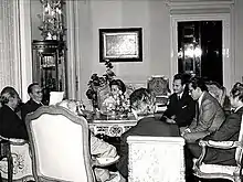 President of Indonesia Sukarno visited Yugoslavia on multiple occasions in 1956,1958,1960,1963 and 1964 while President of Yugoslavia Josip Broz Tito visited Indonesia in 1958 and 1967.[2] During Sukarno's first visit in 1958 Yugoslav diplomacy perceived its guest (earlier host of the Bandung Conference) as an invaluable dialogue partner in the context of the Poznań protests of 1956, Suez Crisis, President Tito meeting with Nikita Khrushchev and the meeting between Tito, Indian Prime Minister Jawaharlal Nehru and President of Egypt Gamal Abdel Nasser on Brijuni Islands.[4] During the 1964 visit to Belgrade Yugoslav side voiced its concerns over the Indonesia's support of what Belgrade perceived the militant Chinese Communist views on how to settle world problems contrary to Five Principles of Peaceful Coexistence.[5]