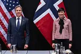 Søreide meets with U.S. Secretary of State Antony Blinken in Reykjavik, Iceland in May 2021.