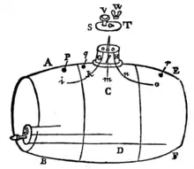 The trick has been dated to 1635, when it appeared in Hocus Pocus Junior: The Anatomie of Legerdemain in London.[1] In this version, a barrel can produce three different drinks on command. Hocus Pocus Junior is a collection work, so the trick must be even older, but no earlier references are known. Harry Houdini found another early mention from 1707, and another in 1712 when part of the "famous water-works of the late ingenious Mr. Henry Winstanly" were demonstrated by his wife. By the late-18th century the trick was so well known that in 1780, John Theophilus Desaguliers used the trick to demonstrate hydrostatics.[2] It remained a standard demonstration for the next century at least.[3]
