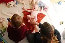 Ayurvedic medicine in ancient India taught the use of infant massage.[3] It was also has been encouraged in China during the Qing dynasty.[4] At present it is part of traditional childcare in South Asia and elsewhere where daily massage by mothers is seen as "instilling fearlessness, hardening bone structure, enhancing movement and limb coordination, and increasing weight".[5] Other areas where infant massage is regularly used are African countries and areas in the former Soviet Union. In Western culture, infant massage has been increasingly used in neonatal intensive care units for pre-term infants who are in stressful environments and have limited tactile stimulation.[2]