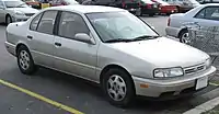 Introduced at the 1993 New York Auto Show, the main changes for the P10 came as a midyear refresh in April 1993 (model year 1993.5), when dual airbags replaced motorized seatbelts, leather interiors came standard with power front seats, matte-black side moldings were replaced by body-colored ones, the refrigerant was converted from R12 to R134a, the audio system was upgraded to six speakers with a CD player instead of the previously-standard cassette deck, and other new options such as remote keyless entry were added. In February 1994, the 1994 model year was given a new larger chrome-plated grille and door handles, a lowport engine (replacing the original highport SR20DE, in which the intake plenum is below the fuel injectors and fuel rail), a change in the vehicle's self-diagnostic system to OBD-II, and larger 195/65R14 tires. The Touring models, introduced in February 1994, featured a limited-slip differential in the transmission; 195/65R14 Yokohama tires, sportier, more highly bolstered black leather front bucket seats and fold-down rear seats; fog lights; and a spoiler on the rear decklid.[5]