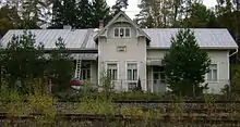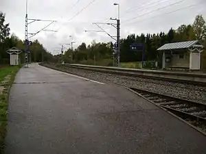 Ingå railway station (Swedish: Ingå järnvägsstation, Finnish: Inkoon rautatieasema) is a railway station in the municipality of Ingå, Finland, between the stations of Siuntio and Karis. It is located 19.3 kilometres (12.0 mi) west of the Siuntio station and 16 kilometres (9.9 mi) east of the Karis station. The station was designed by architect Bruno Granholm.