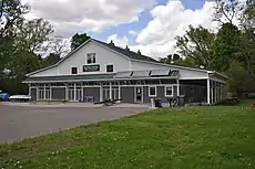 Completed in 1868, the hotel cost Mr. Davis a total of $162,000 (approximated $3.6 million in 2016 US Dollars), and opened on July 4. On July 21, 1871, the hotel hosted the first college rowing regatta in the United States held by the Rowing Association of American Colleges, one of the country's earliest intercollegiate undergraduate sporting events. Held on the banks of the Connecticut River, Massachusetts Agricultural College won the event in an upset against the teams of Harvard, Yale, and Brown.[10] This would be one of the only significant events in the resorts history however, as following the Panic of 1873, it would be sold at auction to one N.S. Chandler "for a little less than $30,000".[8] The hotel, which featured a farm, telegram station, gasworks, and railway stop, was short-lived however, and closed in the winter of 1874 due to low attendance in the midst of an economic depression.[11] The hotel was razed by fire on July 25, 1875, with some indication that the blaze "was the work of an incendiary".[12][13] The hotel and its contents were insured in total for $20,000.[14] Though the hotel itself stood on the shores of the Connecticut for less than a decade, the Ingleside name would persist as that of the surrounding area long after its absence.[15]