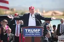 The book chronicles Taibbi's changing assessments of Trump's likelihood to win the 2016 election for president.[12] In August 2015, he criticizes the poor slate of candidates for the Republican nomination for president, calling them the "GOP clown car".[16] Taibbi begins to change his views after personally visiting speeches by Trump at campaign stops in the beginning portion of 2016.[16] In an election dispatch from September 2016, Taibbi writes, "I still don't think Trump really has a chance, but we're sure headed towards a scary ending."[12] In October, he states, "Trump can't win. Our national experiment can't end because one ageing narcissist got bored of sex and food. Not even America deserves that."[12] The book castigates Republican tactics of engaging in culture wars, writing they are, "taking advantage of the fact that their voters didn't know the difference between an elitist and the actual elite, between a snob and an oligarch."[9] Taibbi documents how Trump's inflammatory campaign rhetoric, often over social media including Twitter, garnered him increased publicity which led to increased influence.[17]
