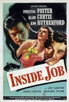 Inside Job is a 1946 American crime film noir directed by Jean Yarbrough starring Preston Foster, Ann Rutherford, Alan Curtis and Milburn Stone.[1]