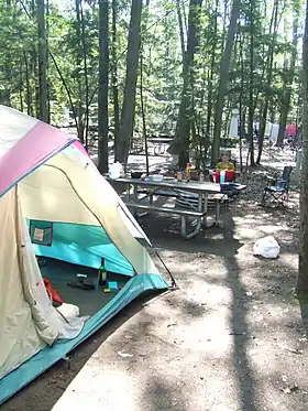Interlochen State Park is a public recreation area covering 187 acres (76 ha) between Green Lake and Duck Lake in Grand Traverse County, Michigan. It was the State of Michigan's first officially recognized state park. It was established by the Michigan Legislature in 1917; $60,000 was paid for the land.[4][5] Originally named Pine Park, the park was created to preserve for future generations the virgin pine (Pinus strobus) stand.[6] It is one of the few easily reached places in Michigan where old-growth (pre-European settlement) red pine can be found.[7]