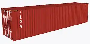 40 foot high-cube container. The one foot extra height is indicated by the black and yellow markers near the top corners.