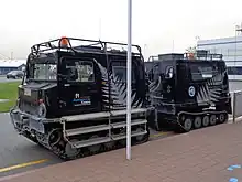 One of the attractions at the centre is the Swedish-made Hägglunds dual-cab all-terrain vehicles used for transport on the ice. The vehicles at the International Antarctic Centre are similar to those used in Antarctic operations, but have been adapted for the visitor experience at the centre. The first Hägglunds arrived in 1999,[11] and in the next 12 months, more than 27,000 people took a ride around the visitor centre in the vehicle.[12]
