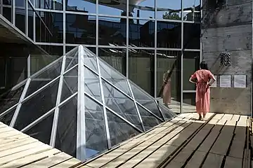 An exhibition named “The Humanitarian Adventure” presents three contemporary problems through three distinct spaces; each created by a different architect: Defending human dignity (Gringo Cardia, Brazil), Reconstructing family links (Diébédo Francis Kéré, Burkina Faso), Reducing natural risks (Shigeru Ban, Japan).