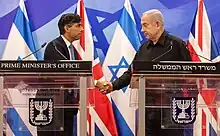 - ↑ "Sunak Visits Israel in Display of British Support". New York Times. October 19, 2023. Archived from the original on October 20, 2023. Retrieved October 22, 2023.