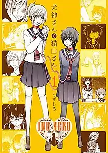 Inugami-san to Nekoyama-san started as a four-panel yuri manga series, drawn by Kuzushiro. The manga was serialized in Ichijinsha's Comic Yuri Hime from November 18, 2011, to February 18, 2017.[3] Additionally, the series was released online in Niconico's web manga magazine Niconico Yuri Hime on February 18, 2013.[4] Six tankōbon volumes were published.[5][6][7][8][9][10]