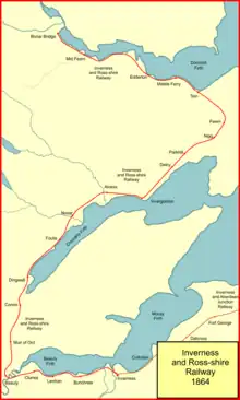The Inverness and Ross-shire Railway was a Scottish railway company formed in 1860 to build a line from Inverness to Invergordon. It opened in 1862 as far as Dingwall and in 1863 to Invergordon. It was extended to a Bonar Bridge station in 1864. It provided the basis for later extensions that eventually reached Thurso, forming the Far North Line. The Dingwall and Skye Railway branched off at Dingwall to reach the Kyle of Lochalsh.