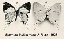Iolaus bellina, the white-spot sapphire, is a butterfly in the family Lycaenidae. It is found in Sierra Leone, Liberia, Ivory Coast, Ghana, Togo, Nigeria, Cameroon, São Tomé and Príncipe, Gabon, the Republic of the Congo, the Democratic Republic of the Congo, Uganda, Kenya and Tanzania.[2] The habitat consists of forests.