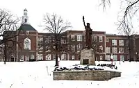 Iowa City High School is a public high school in Iowa City, Iowa and is part of the Iowa City Community School District. The present high school was completed as part of the Public Works Projects started by President Franklin D. Roosevelt to provide jobs. The first classes were held in the fall of 1939.[2] The previous high school building, built in 1909, was converted to a junior high school after the new building opened.[3]:160 It was located where Mercy Medical Plaza now stands. The current building sits on a hill on the east side of Iowa City. The school motto is "The School that Leads."