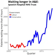 - ↑ "Ipswich: Hospital facing fines of up to £1million for missing key targets". EADT24. 26 November 2013. Retrieved 8 December 2013.