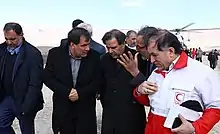 In response to the crash, crisis centres were set up in Tehran, Isfahan, Fars and Yasuj.[8] Weather conditions at the crash site, including snow and strong winds, were hampering search and rescue services.[6] The Red Crescent Society announced that a drone would be flown to the area due to the severe weather condition which prevented helicopters to reach the crash site. Search and rescue team announced on 19 February that at least 5 helicopters had been prepared for the search operation.[17] Troops with search dogs were deployed to hike the mountain and to search the area on foot. Search and rescue operation via air was stopped for the second time due to bad weather conditions.[18] Reports that the wreckage had been found at an elevation of 11,482 feet were refuted by officials from the Iranian Red Crescent and Iranian investigators.[19][20]