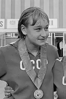Irina Valentinovna Pozdnyakova (Russian: Ирина Валентиновна Позднякова; born 29 April 1953) is a retired Russian swimmer. In 1966, aged 13, she set a world record in the 200 m breaststroke. The same year she won a silver medal at the 1966 European Aquatics Championships.[1][2][3]
