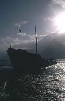 At the outbreak of the Second World War Ireland declared neutrality.[47] There were a total of 56 Irish ships at the outbreak of World War II; 15 more were purchased or leased in the conflict, and 16 were lost.[note 14] Up to then most Irish-registered ships had been flying the red ensign of the United Kingdom Merchant Navy. All were required by UK law to fly the Red Ensign, but some, such as the Wexford Steamship Company ships, had always travelled under the tricolour.[52] With the outbreak of hostilities, choices were forced. The Irish government ordered all Irish ships to fly the tricolour.[53] Some British ships were on the Irish register, such as the whalers which were Scottish-owned (Christian Salvesen Shipping)[54] but Irish-registered[55] in order to take advantage of the Irish whale quota. The six whale catchers and the two factory ships were pressed into British naval service, after their owners transferred them to the British registry.[56] Some ships which could be described as British also choose the Tricolour. Kerrymore, which was registered as belonging to R McGowan of Tralee, was actually owned by Kelly Colliers of Belfast. Most of the crew had addresses in loyalist areas of Belfast. For six years they sailed under the tricolour.[57]